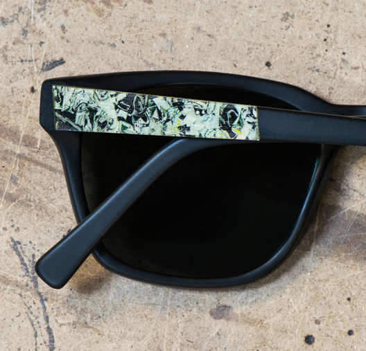 These limited-edition Brickma frames feature inlays made from recycled U.S. currency and are handcrafted in the USA. We took shredded money from the Bureau of Engraving and Printing and stabilized it with resin to transform it into a workable form. The shredded money is paired with all natural cellulose acetate which is a plant-based plastic made from cotton and wood fibers. It is hypoallergenic, strong, lightweight and flexible. Each pair of frames is outfitted with 5-barrel hinges, polarized lenses and comes with a lifetime warranty.